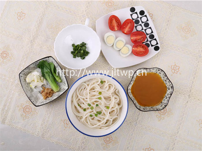3.將煮熟的面條撈出加入到沖好雞汁的湯碗中,將稱量好的佐料加入湯中即可。