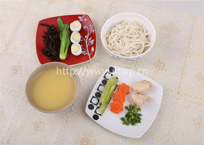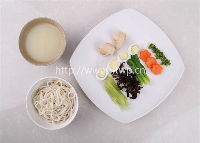 1.雞蛋煮熟切半,胡蘿卜切片,小油菜、木耳燙熟,雞塊煮熟后備用;