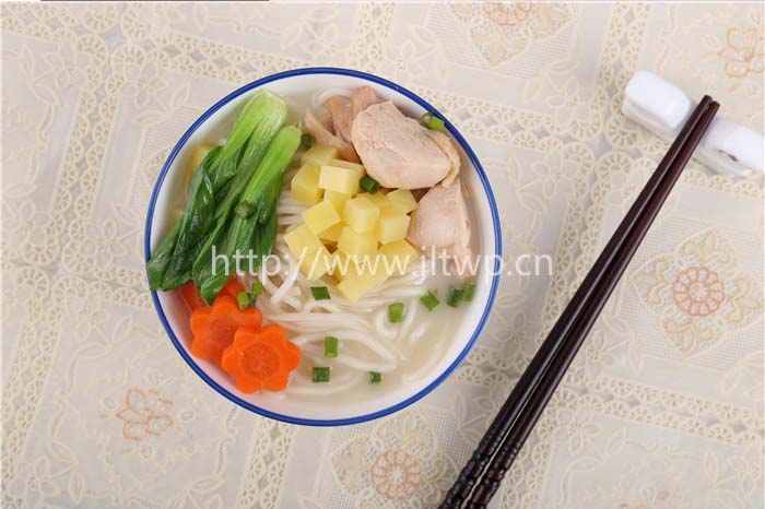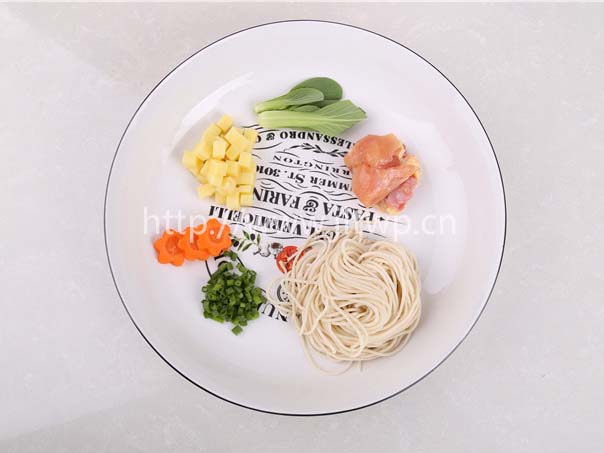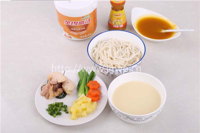 2.水燒開后加入金鑼原汁雞骨高湯、金鑼雞骨清湯、金鑼雞汁、食鹽,再次煮沸后備用;